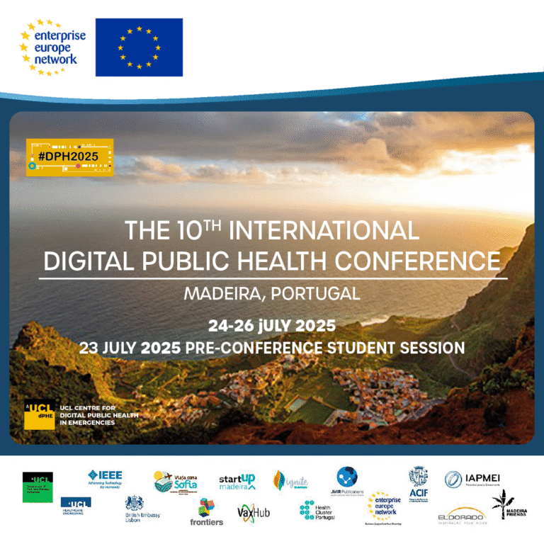 Το Enterprise Europe Network σας προσκαλεί να συμμετάσχετε στην εκδήλωση επιχειρηματικών συναντήσεων (B2B matchmaking) της 10ης έκδοσης του Συνεδρίου Ψηφιακής Δημόσιας Υγείας (DPH 2025), που θα πραγματοποιηθεί με φυσική παρουσία από τις 24 έως τις 26 Ιουλίου 2025 στη Μαδέρα και διαδικτυακά από τις 27 έως τις 31 Ιουλίου 2025.