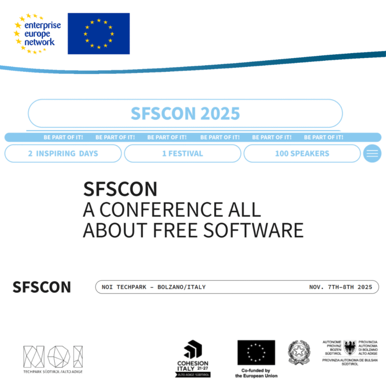 The Enterprise Europe Network Cyprus would like to invite you to take part in Matchmaking Meetings at the upcoming South Tyrol Free Software Conference (SFSCON 2025), a leading event for digital innovation, collaboration, and knowledge exchange.